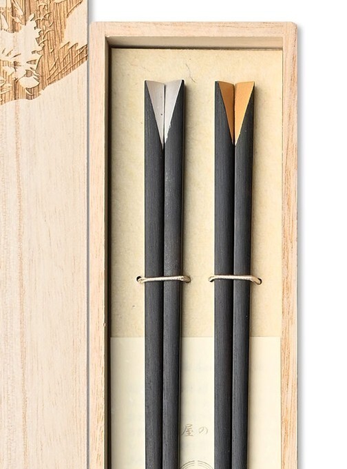 名古屋のお箸 黒檀金銀天削ペア 【数量限定】