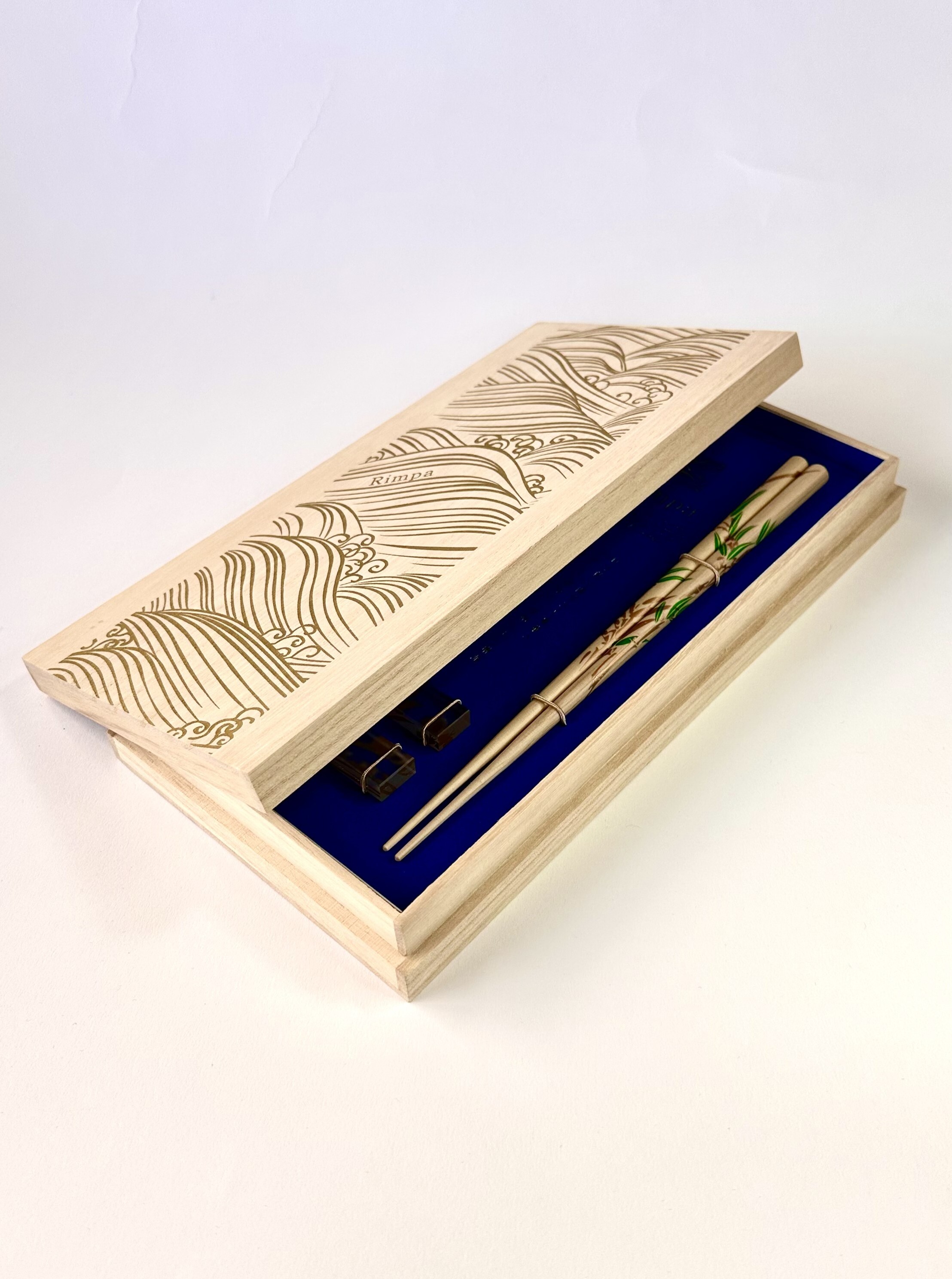 そして、まるで和菓子の寒氷のような箸置きには、流水にカキツバタの柄がさりげなく描かれています。