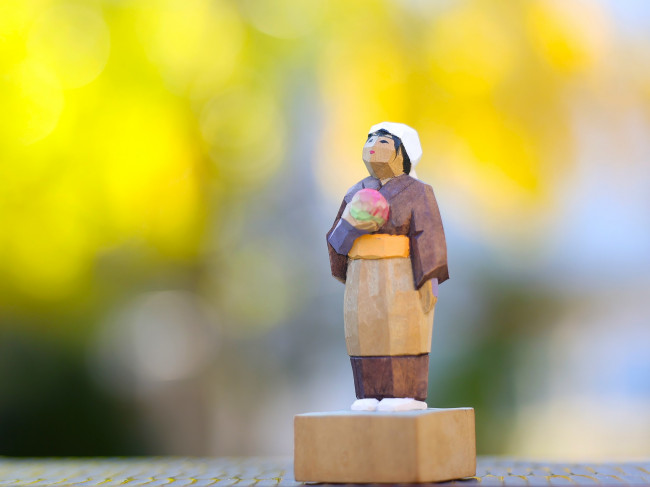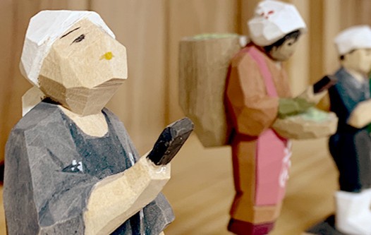 KOPPADOLL=こっぱ人形は、斧やのこぎりで切った木の切れ端=「こっぱ」を彫って作られた人形。