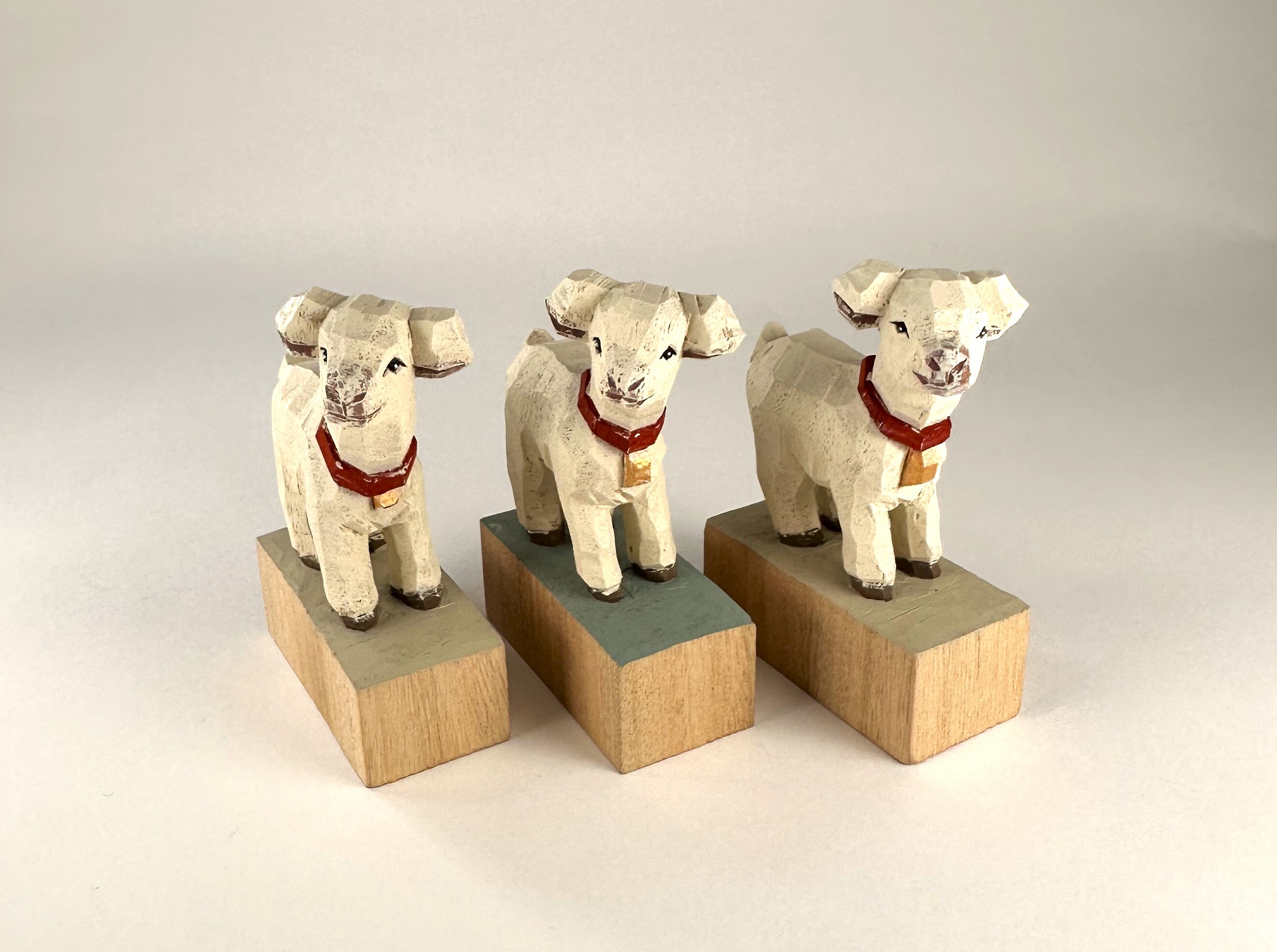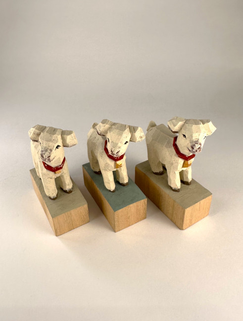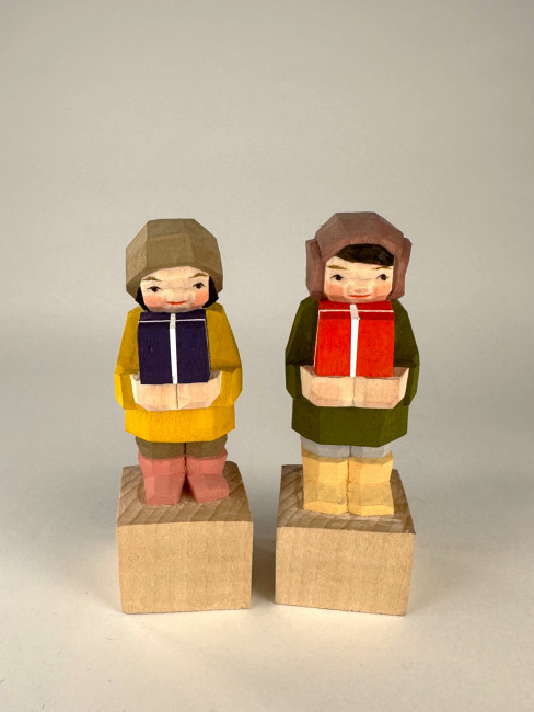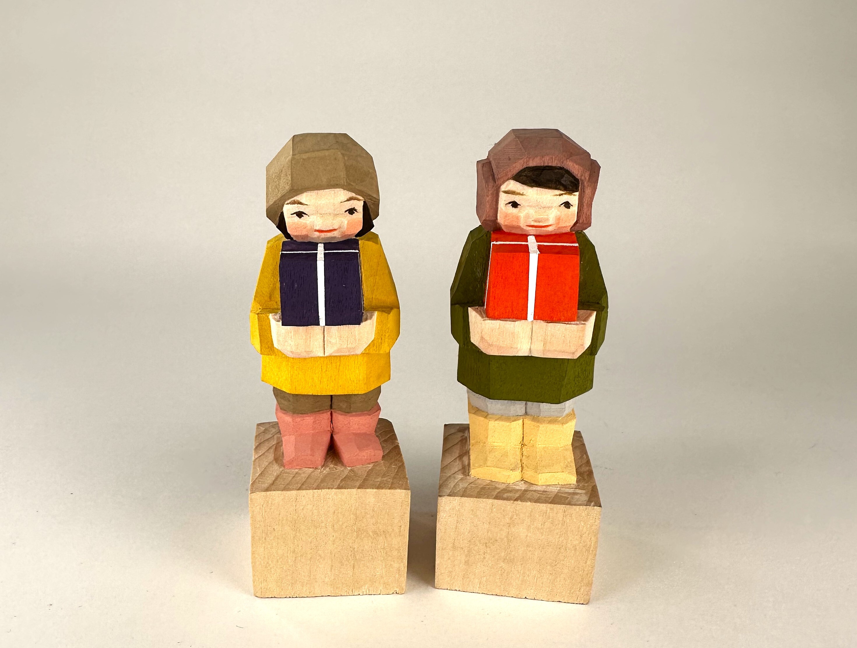 「プレゼント」 (各H9.5×W3.5×D3.5) 木の素材はシナノキです。