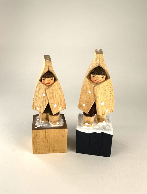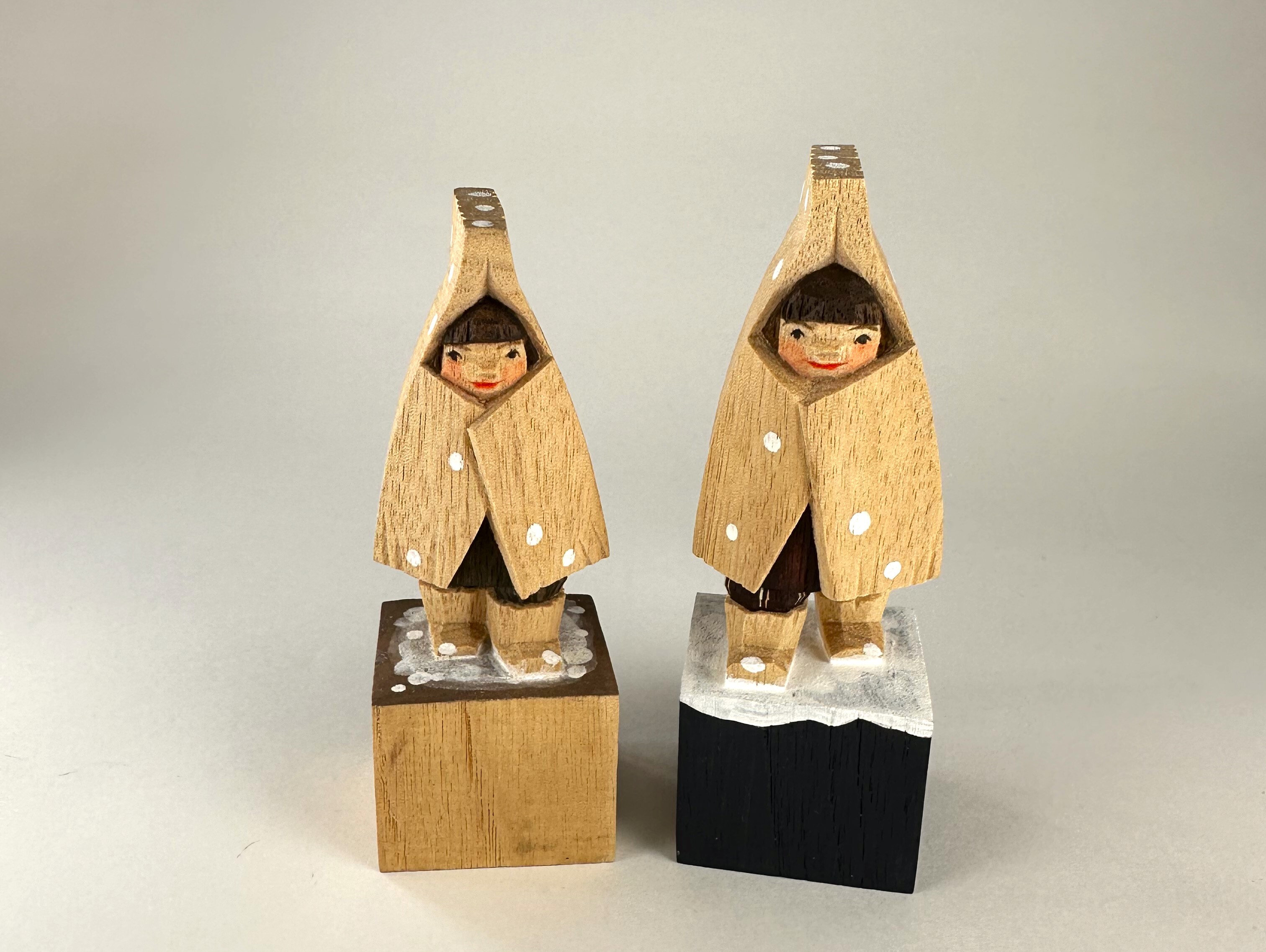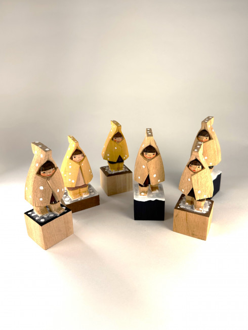 「ユキンコ」 (各H11.0×W3.5×D3.5) 木の素材はクスノキです。