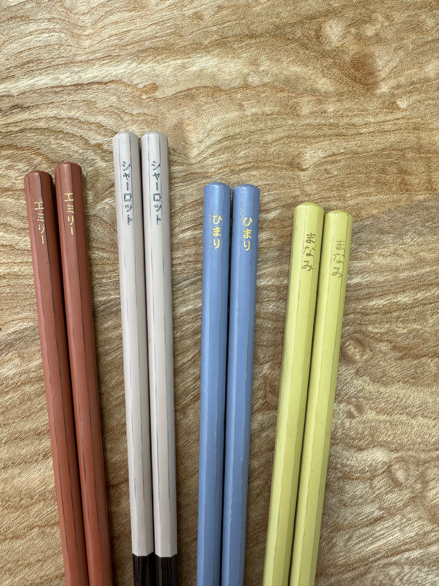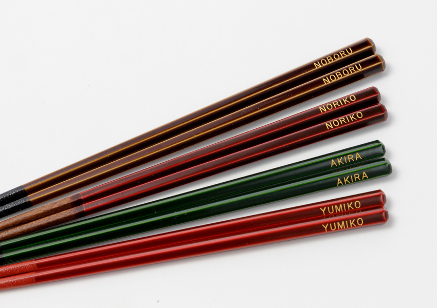 お好みのお箸をお選びいただき、その場で無料にてお名前やメッセージをお入れいたします。